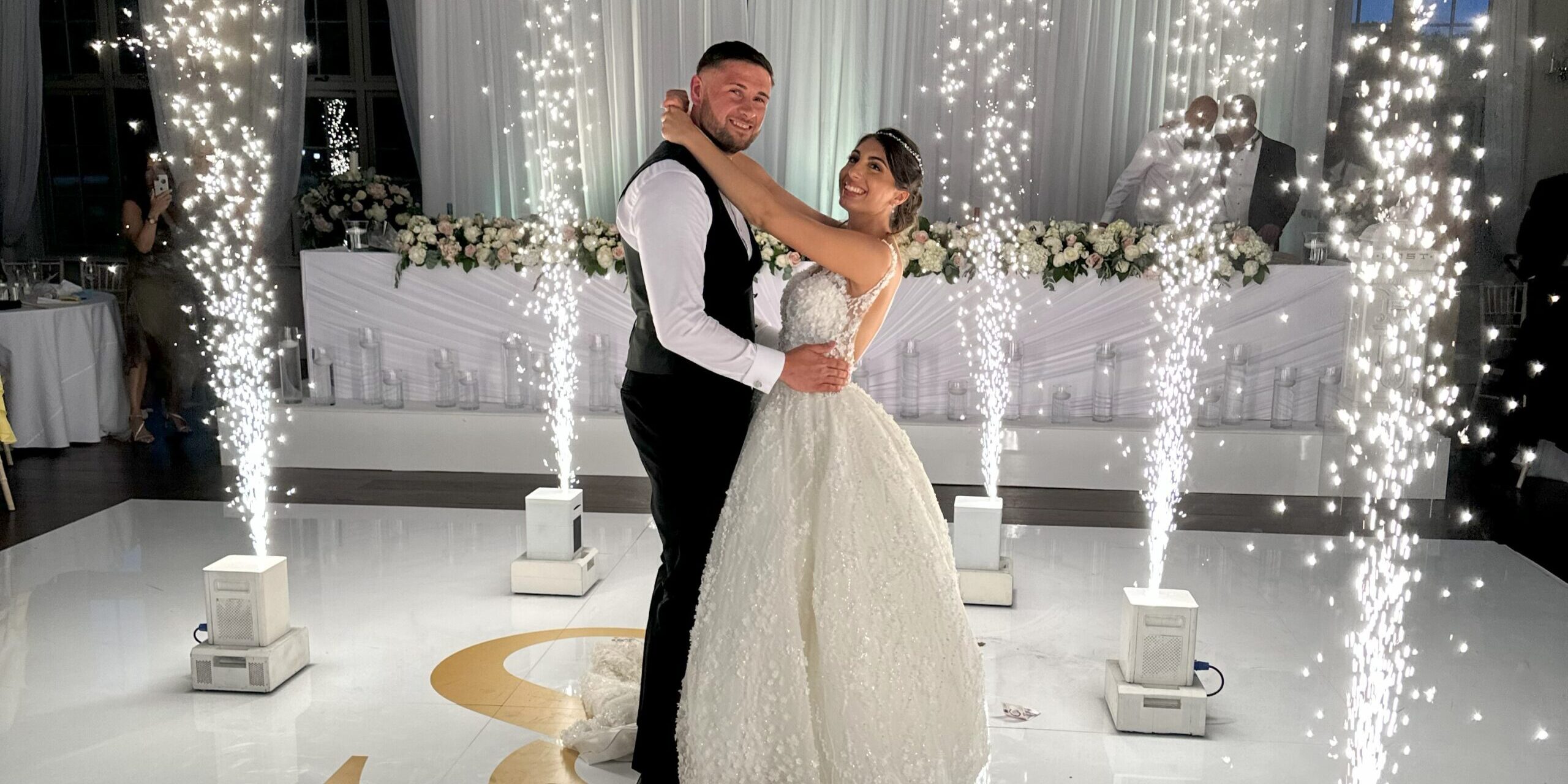 One of the highlights of the evening was the couple’s first dance. As the couple took to the floor, the atmosphere became electric with indoor fireworks surrounding them. This dazzling display created a picture-perfect moment that left everyone in awe and set the tone for a night full of celebration and joy.